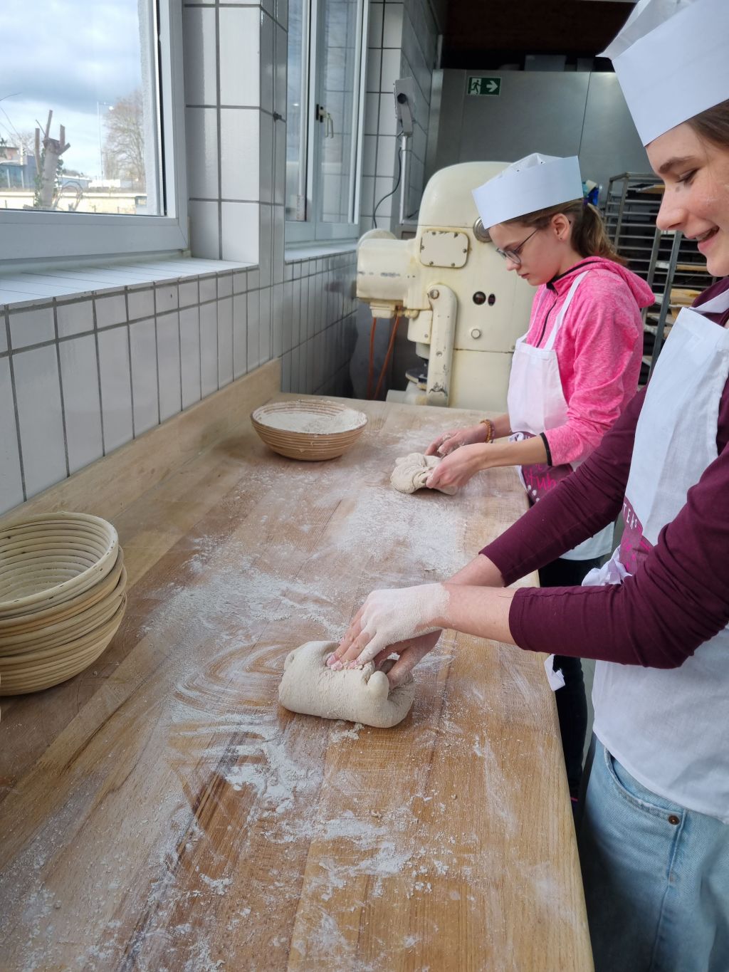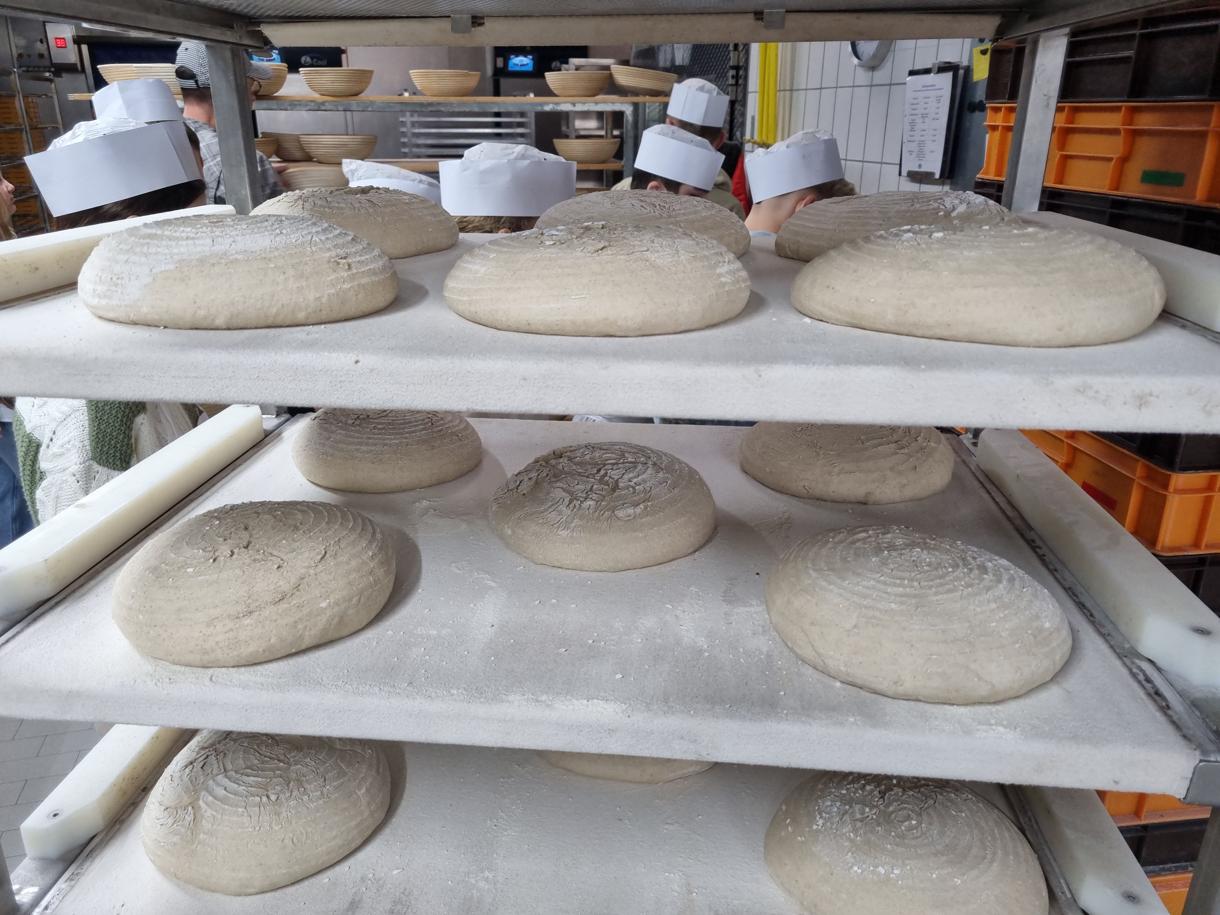 Am Wochenende vom 1. Advent 2025 beteiligten sich die Konfirmanden aus Lindenberg und Rautheim an der Aktion 5000 Brote – Konfis backen Brot für die Welt. Die Bäckerei Richter hatte sich auch dieses Jahr wieder bereit erklärt, die Aktion zu unterstützen und so fuhren die Konfis am 30.11. in die Backstube der Bäckerei nach Wolfenbüttel, wo sie von den Bäckern Jan und Carsten Richter herzlich begrüßt wurden. Nach einer kurzen Einweisung in die Kunst des Brotformens machten sich die Konfis ans Werk. Neunzig Brotlaibe wurden geformt. Mit der Zeit wurden die Handgriffe immer geübter. Während die Brote im Anschluss gehen mussten, zeigten die Bäcker die Backstube, die Maschinen, mit denen der Teig geknetet wird und die Brötchen geformt werden, die riesigen Mehlsilos, die Kühlung und zuletzt die Hightech-Öfen. In letztere kamen schließlich auch die Brote der Konfis.