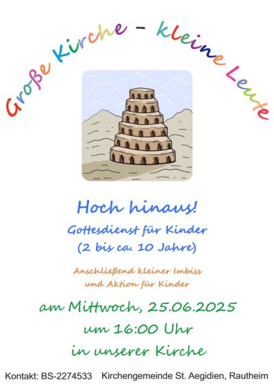 Anschließend kleiner Imbiss und Aktion für Kinder am Mittwoch, 25. Juni 2025 um 16:00 Uhr in der Kirche Rautheim