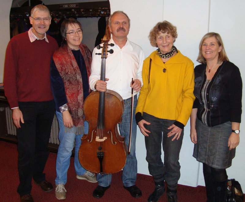 Warum Elfenorchester? Ganz einfach: Elfi heißt schließlich die Gründerin des Ensembles! Die sieben Frauen und Männer an den Instrumenten, dazu zwei Zuhörer, kommen aus verschiedenen Orten zwischen Helmstedt und Baddeckenstedt. Sie treffen sich schon seit vier Jahren (oder länger?) und musizieren just for fun: vorzugsweise Barockmusik und Folklore, besonders gern Klezmer. Die musikalische Begeisterung ist dabei recht unterschiedlich ausgeprägt – die einen bevorzugen es, nach Noten zu spielen, andere improvisieren auch gern: am E-Piano und an der Geige, dem Cello und den Blockflöten – und last but not least – an den Gitarren! Die Gruppe trifft sich etwa vierteljährlich, meist sonntags zum Kaffee; es wird erzählt und gelacht, und dann werden die Instrumente ausgepackt. Diese „internen" musikalischen Begegnungen machten den Beteiligten bislang viel Spaß!
