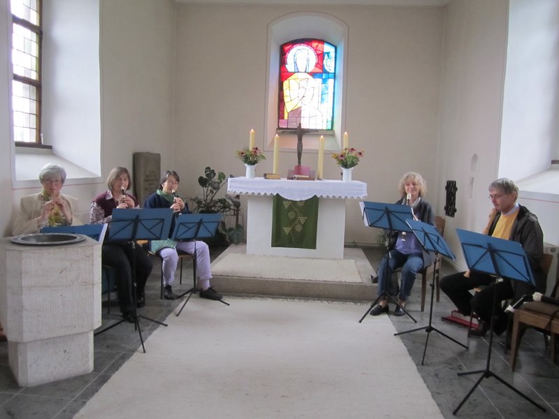 Wiedersehen zu genießen und zu feiern. Wir saßen lange zusammen und es gab viel zu erzählen. - Vielleicht war es nicht das einzige Mal, dass wir im Gottesdienst von Pfarrerin Melanie Schwerdtfeger geflötet haben.
