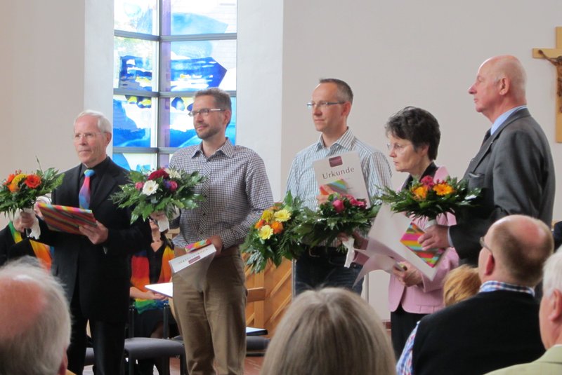 Bereits im März hatte die Gemeinde gewählt, im Gottesdienst am Sonntag Trinitatis, 3. Juni, führte Pfarrer Hans-Jürgen Kopkow den neuen Kirchenvorstand in sein Amt ein. Er wünschte den neuen Verordneten gutes Gelingen für ihre Aufgabe und legte ihnen dazu segnend die Hand auf: